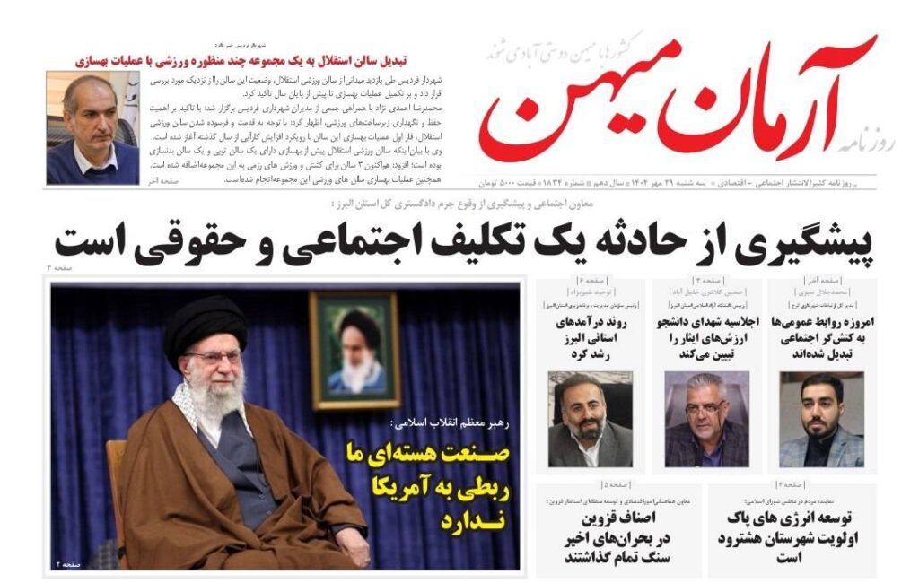 روزنامه کثیرالانتشار آرمان میهن ( 29مهر ۱۴۰۴)